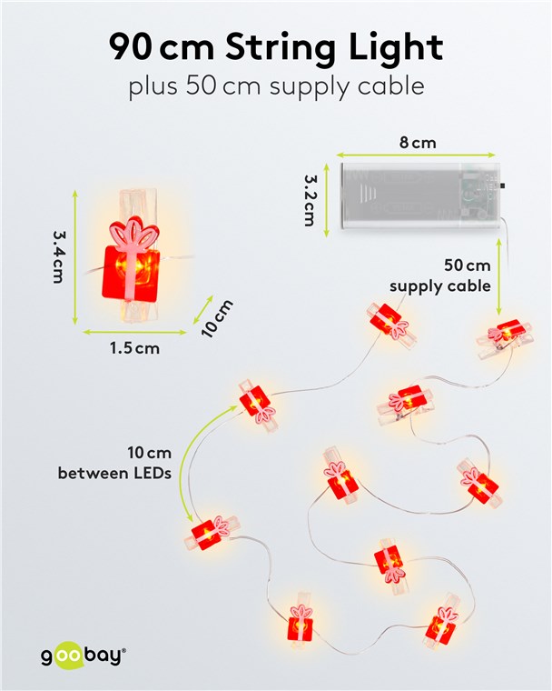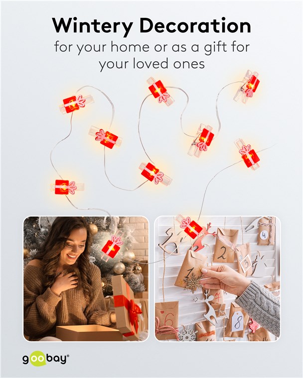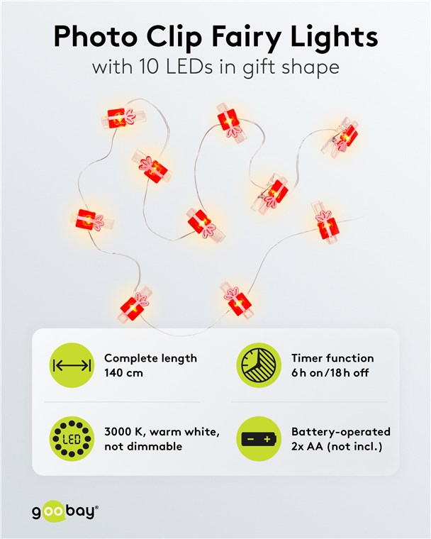 10 LED łańcuch świetlny z klipsami na zdjęcia "Prezent"