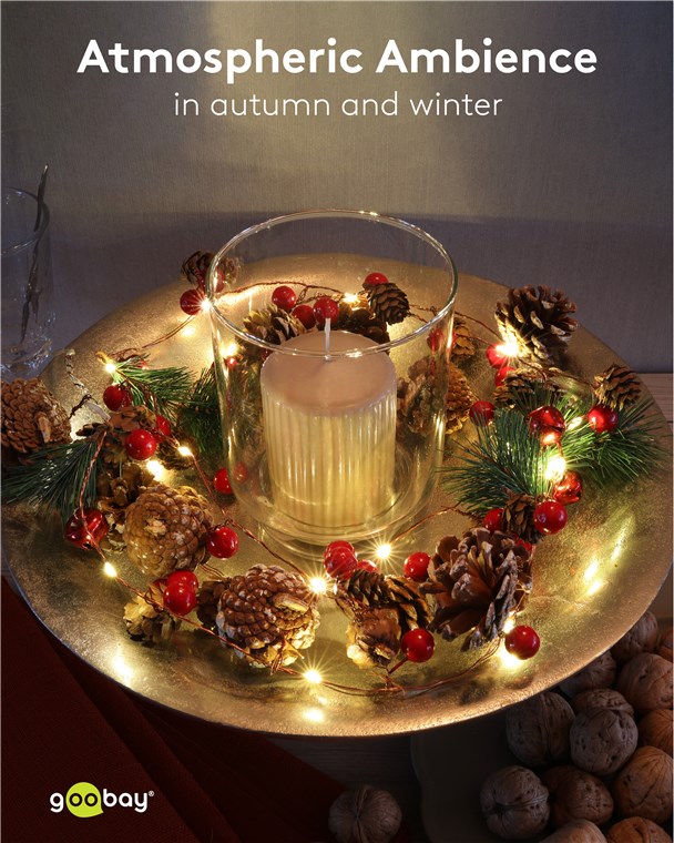 20 LED łańcuch świetlny z drutu "Szyszki & czerwone jagody"