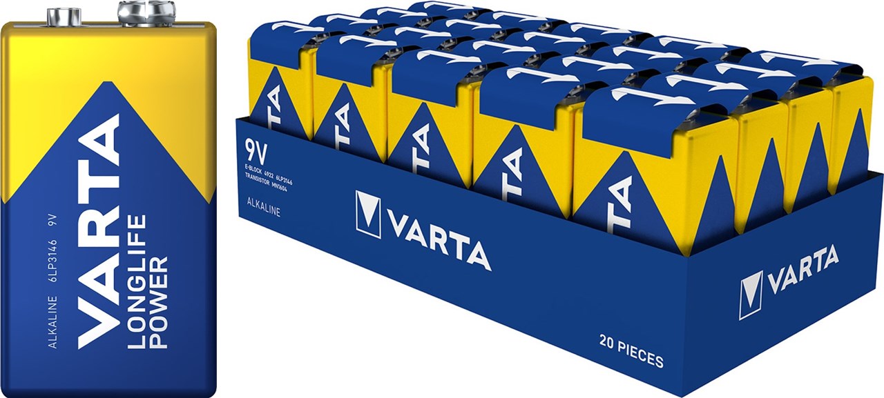 - Nieużywane i zapakowane baterie blokowe VARTA 9 V zachowują świeży, naładowany stan przez okres do 10 lat.