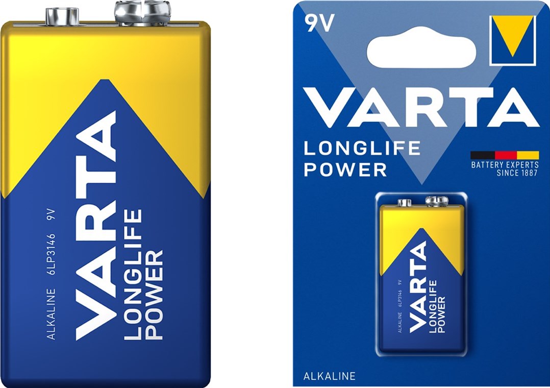 - Nieużywane i zapakowane baterie VARTA 9 V zachowują świeżość i ładunek nawet przez 10 lat.