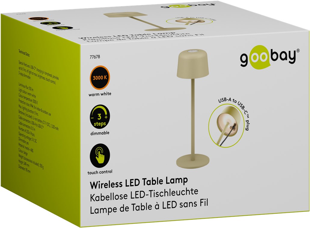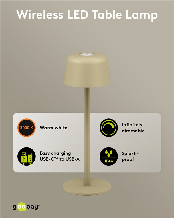 Bezprzewodowa lampa stołowa LED, rozmiar S, 25 cm, beżowy