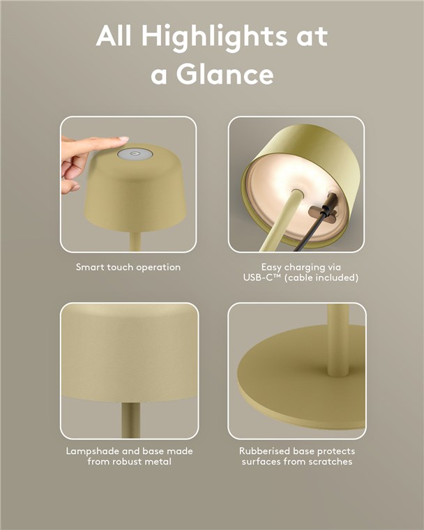 - Lampka zachwyca wyrafinowaną obsługą dotykową i zintegrowanym akumulatorem, dzięki czemu jest bezprzewodowa i elastyczna w użyciu w dowolnym miejscu