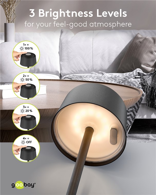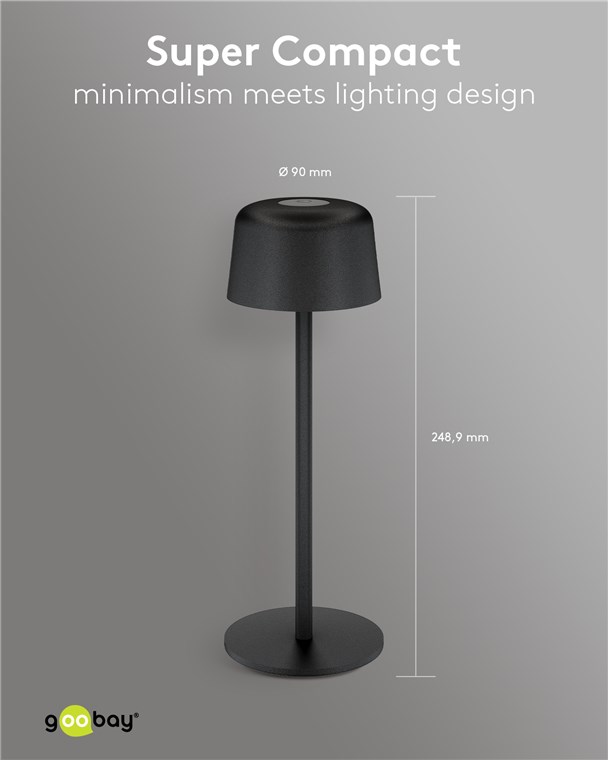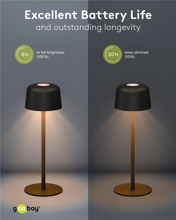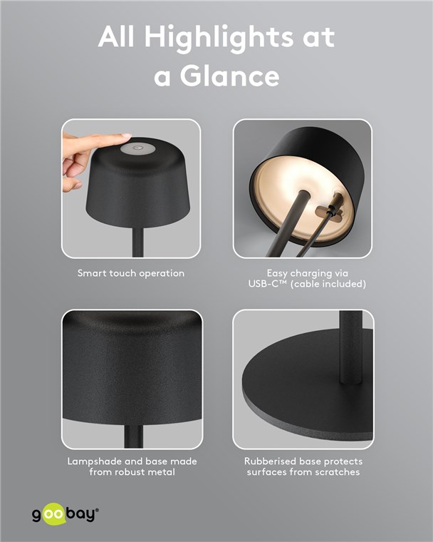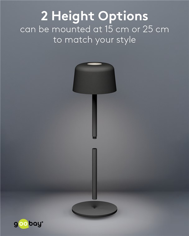 Dzięki minimalistycznemu, skandynawskiemu wzornictwu, lampa stołowa wzbogaci każdy salon, sypialnię lub jadalnię, a także będzie wizualnym akcentem na przyjęciu w ogrodzie. Wykonana z wysokiej jakości, solidnego metalu, innowacyjna lampa Goobay to synonim jakości i trwałości.