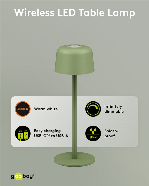 Bezprzewodowa lampa stołowa LED, rozmiar S, 25 cm, Zielony