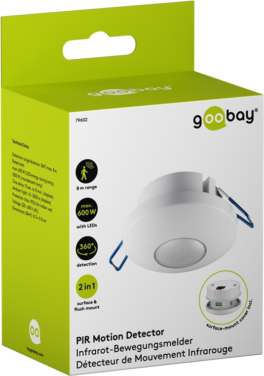 Elastyczność jest najważniejsza: Czujnik ruchu posiada dwa zaciski do bezpiecznego montażu podtynkowego. W razie potrzeby zaciski można zdjąć, aby przekształcić czujnik ruchu w wersję natynkową za pomocą dołączonego baldachimu. Dzięki obu opcjom montażu idealnie nadaje się do korytarza, łazienki lub przedpokoju – czujnik ruchu zawsze niezawodnie aktywuje podłączone oświetlenie.