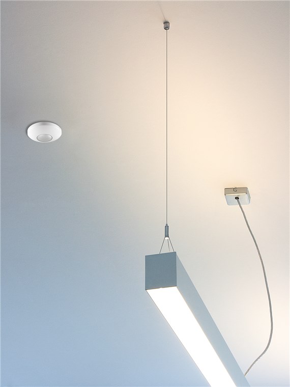 - Dzięki kątowi wykrywania 360° idealny do montażu podtynkowego na suficie, wysokość montażu: od 2,20 m do 4 m