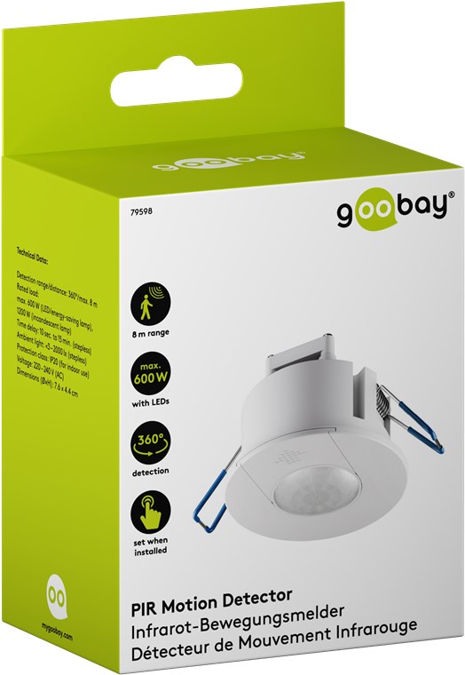 - Dzięki kątowi wykrywania 360° idealny do montażu podtynkowego na suficie, wysokość montażu: od 1,80 m do 4 m