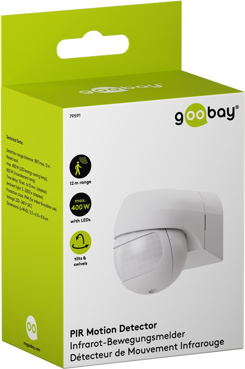 Wiatr i pogoda? Nie ma problemu, czujnik ruchu o stopniu ochrony IP44 idealnie nadaje się do zastosowań zewnętrznych, takich jak ogród, wiata garażowa lub wejścia do domu. Wystarczy podłączyć go do oświetlenia zewnętrznego lub ścieżki, aby uniknąć potknięć o zmierzchu i w ciemności. Czujnik ruchu Goobay – z pewnością dobre samopoczucie.