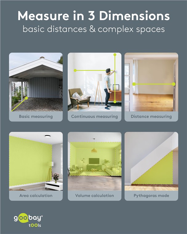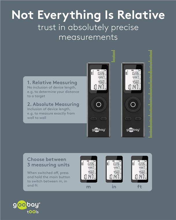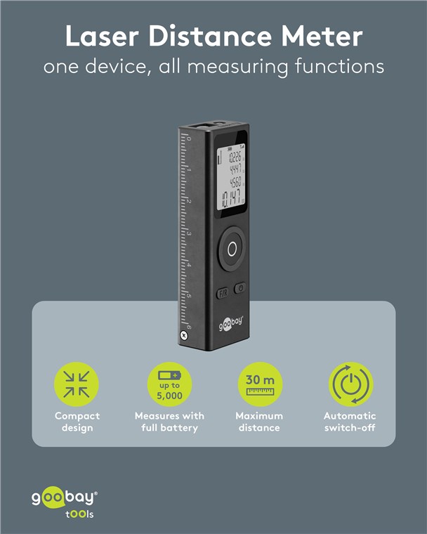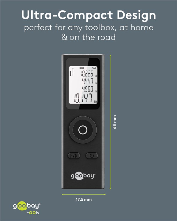 - Ultrakompaktowy dalmierz do precyzyjnego pomiaru powierzchni pomieszczeń, podłóg i ścian podczas prac remontowych, np. podczas malowania oraz układania płytek, laminatu lub parkietu