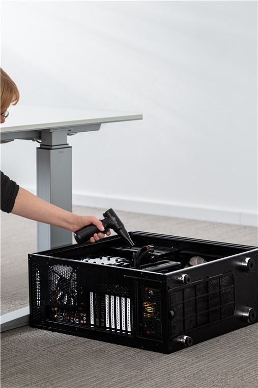 - Elektryczna dmuchawa do usuwania kurzu z klawiatur, obudowy komputera, wnętrza samochodu i innych trudno dostępnych miejsc