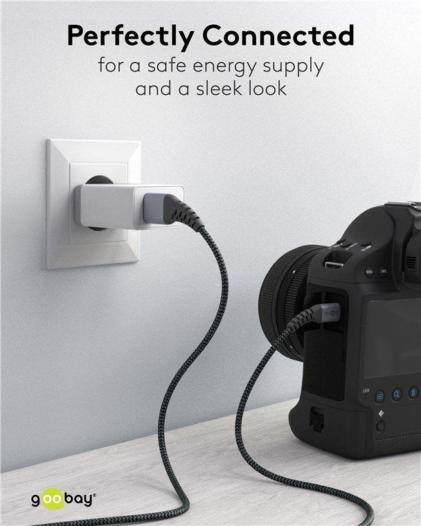 - Kabel ładujący Micro-USB firmy Goobay do szybkiego ładowania o maksymalnym natężeniu 3 A.