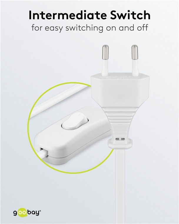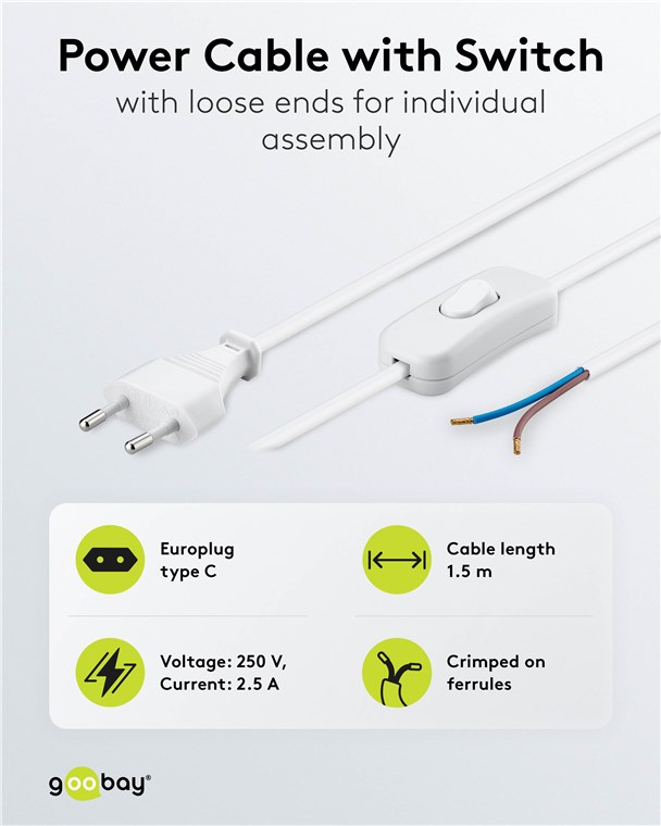Kabel z wtyczką Euro do montażu - z wyłącznikiem, 1,5 m, biały