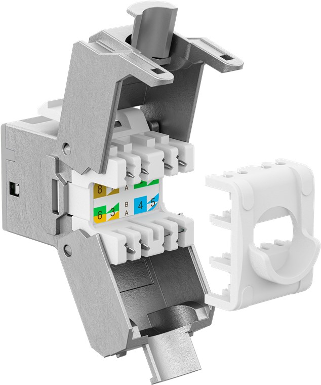 Jeden system, wszystkie złącza: dzięki modułowemu systemowi połączeń Keystone można szybko i elastycznie zainstalować dowolne złącze w pustej obudowie, gniazdku sieciowym lub panelu krosowym. Niezależnie od tego, czy chodzi o RJ45, HDMI™, USB czy antenę satelitarną – dla standardowych portów modułowych (14,9 x 17,0 mm) zawsze dostępne jest odpowiednie złącze Keystone. Prosta instalacja bez użycia narzędzi dzięki praktycznemu mechanizmowi zatrzaskowemu. Dzięki temu zawsze będziesz o krok przed chaosem kabli.