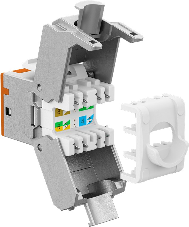 Jeden system, wszystkie złącza: dzięki modułowemu systemowi połączeń Keystone można szybko i elastycznie zainstalować dowolne złącze w pustej obudowie, gniazdku sieciowym lub panelu krosowym. Niezależnie od tego, czy chodzi o RJ45, HDMI™, USB czy antenę satelitarną – dla standardowych portów modułowych (14,9 x 17,0 mm) zawsze dostępne jest odpowiednie złącze Keystone. Prosta instalacja bez użycia narzędzi dzięki praktycznemu mechanizmowi zatrzaskowemu. Dzięki temu zawsze będziesz o krok przed chaosem kabli.
