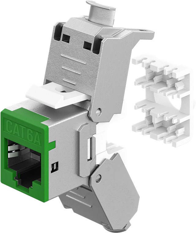 • Moduł Keystone CAT 6A o smukłej konstrukcji i szerokości 16,6 mm do instalacji w panelu krosowym, oszczędzającej miejsce – koniec z problemami z miejscem podczas instalacji kilku modułów obok siebie