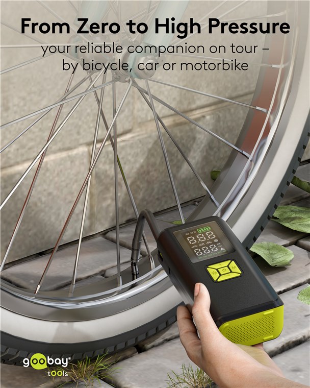 Mini kompresor to poręczny towarzysz podczas wycieczek rowerowych lub podróży samochodem. Jest znacznie wygodniejszy niż ręczna pompka rowerowa i bardziej elastyczny w użyciu niż ciężki, przewodowy kompresor do opon samochodowych. Aby zapewnić niezawodne działanie w ciemności, pompka jest wyposażona w dwie jasne diody LED.