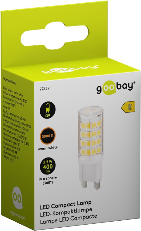 - Dzięki mocy 3,5 W żarówka LED firmy Goobay świeci tak samo jasno jak żarówka tradycyjna o mocy 40 W, ale zużywa około 88 % mniej energii