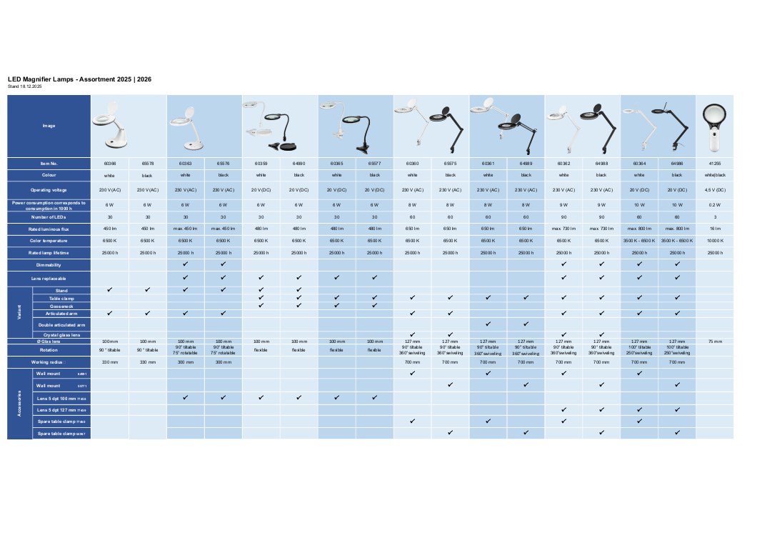 • Uchwyt lampy powiększającej jest odpowiedni do blatów o grubości do 60 mm, wymienny zacisk stołowy: 77460, pasujący uchwyt ścienny: 55771.