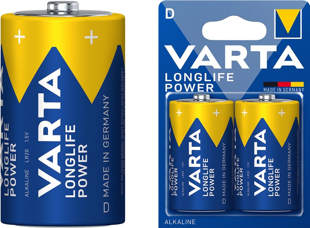 - Nieużywane i zapakowane baterie LR20 od VARTA zachowują świeżość i ładunek nawet przez 10 lat.