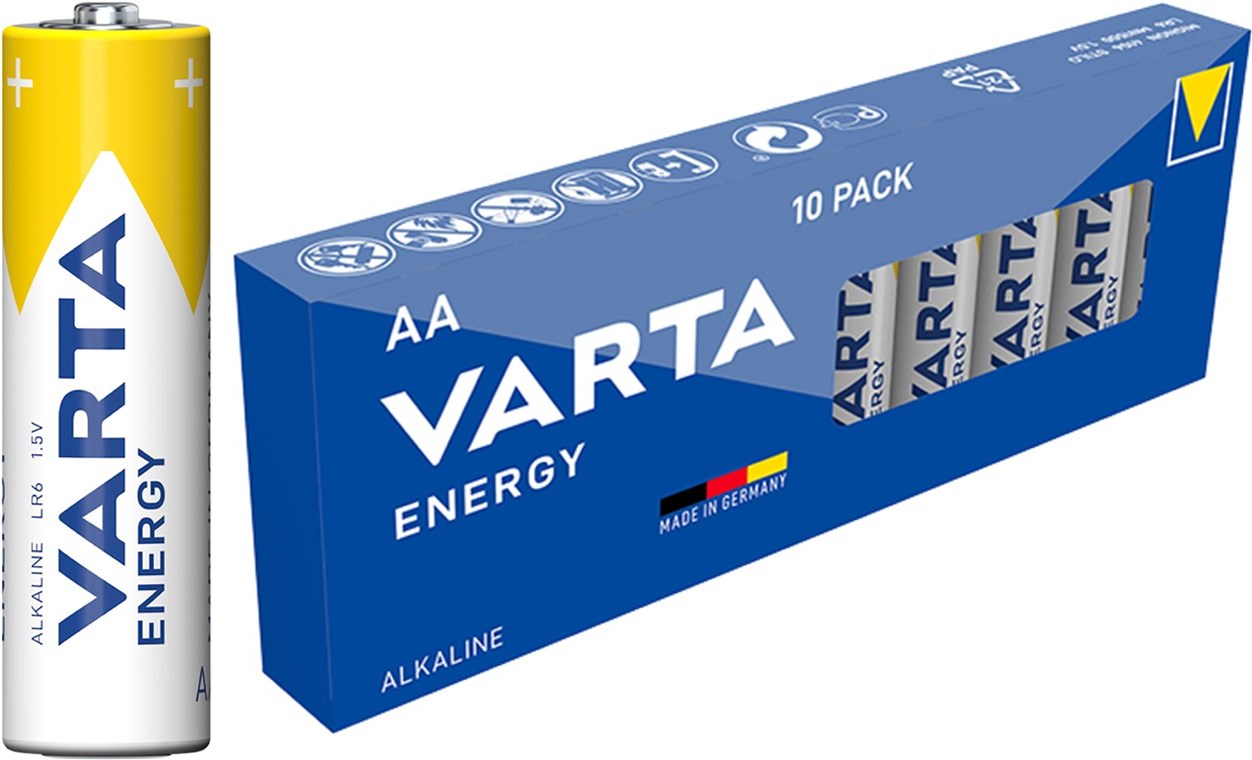 - Nieużywane i zapakowane baterie alkaliczne VARTA AA pozostają świeże i naładowane nawet przez 10 lat.