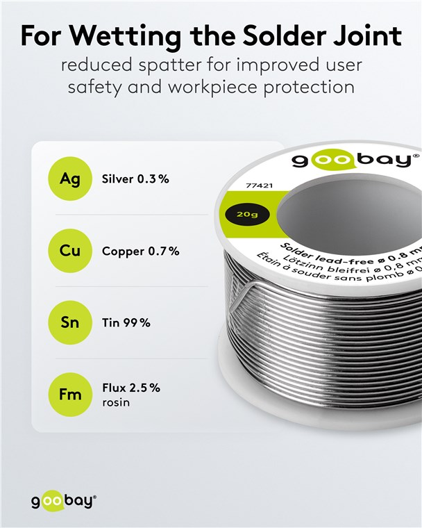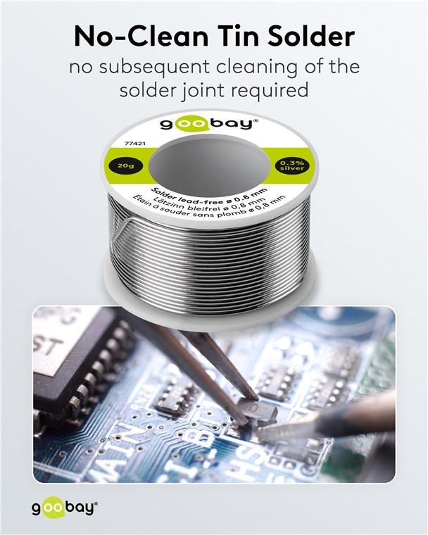 Dzięki niewielkiej średnicy cynę można łatwo dozować, co sprawia, że idealnie nadaje się ona do precyzyjnych prac, np. lutowania elementów elektrycznych i urządzeń, takich jak płytki drukowane, płytki, SMD, DIP, kable, telewizory, słuchawki lub mikrofony. Wbudowany środek pływający no-clean jest szczególnie wygodny, ponieważ po lutowaniu nie trzeba go dodatkowo usuwać z miejsca lutowania.