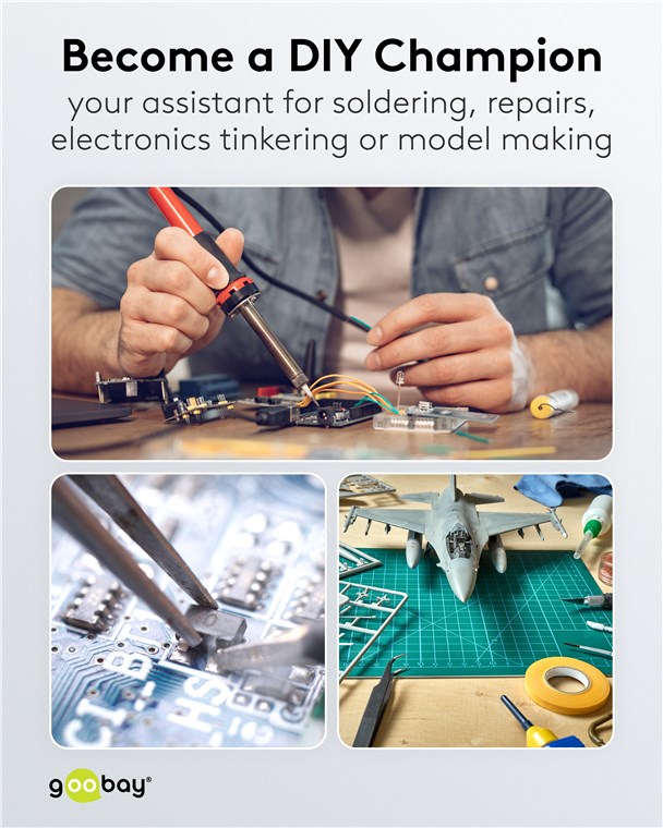 • Szczególnie nadaje się jako pomoc do lutowania małych i lekkich płytek drukowanych, które w inny sposób trudno jest zamocować