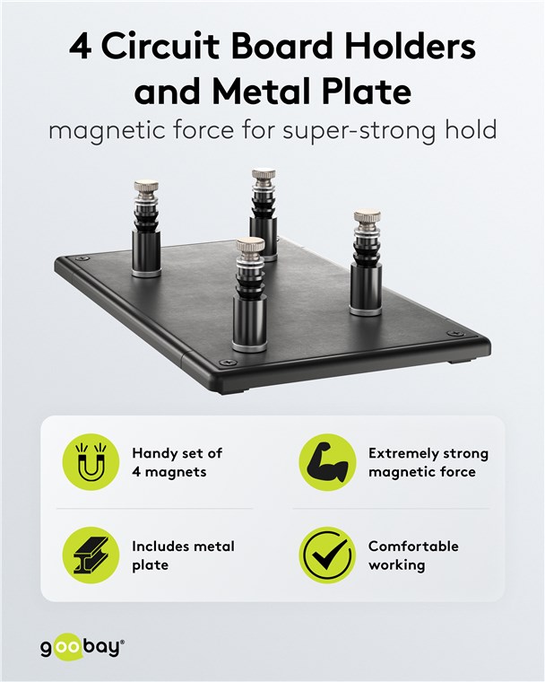 4x magnesy (15 x 47 mm) zapewniające stabilne utrzymanie płytki podczas lutowania