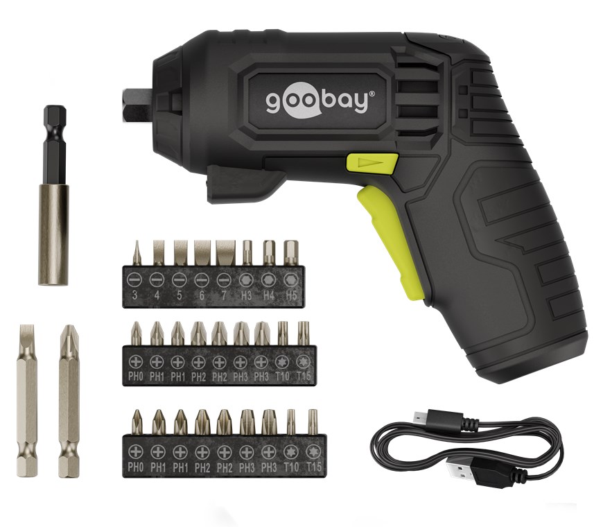 27 bitów, kabel do ładowania USB-C™ na USB-A, przedłużka do bitów, Wkrętarka akumulatorowa
