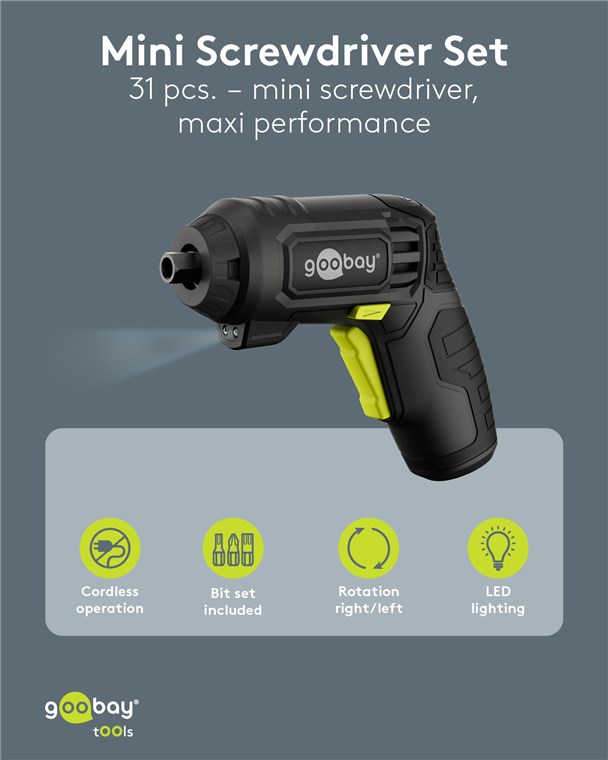Mini wkrętarka akumulatorowa, zestaw 31-częściowy