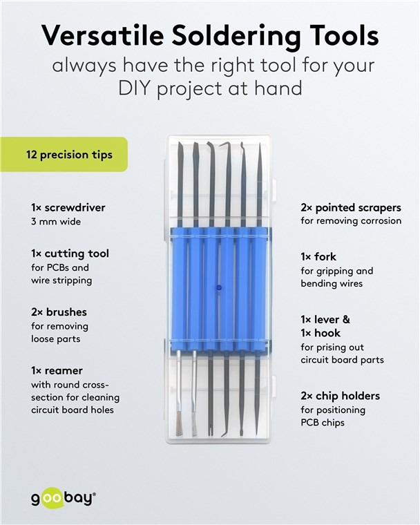 Wszechstronny jak szwajcarski scyzoryk: Dzięki dwunastu precyzyjnym końcówkom zawsze masz pod ręką odpowiednie narzędzie do swojego projektu DIY. Niezależnie od tego, czy chodzi o lutowanie, naprawę, tworzenie elektroniki czy modelarstwo – dzięki różnym końcówkom z łatwością poradzisz sobie z każdym trudnym wyzwaniem. Mini narzędzie, maksymalna skuteczność.