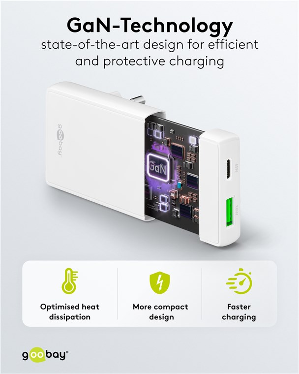 - Półprzewodniki w technologii GaN umożliwiają szybsze i bardziej wydajne ładowanie oraz lżejszą i bardziej kompaktową konstrukcję w porównaniu z tradycyjnymi ładowarkami