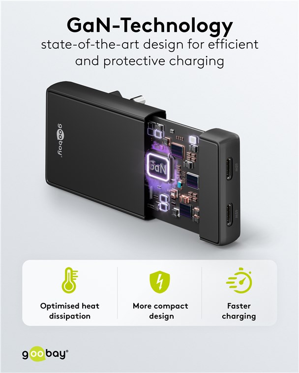 - Półprzewodniki w technologii GaN umożliwiają szybsze i bardziej wydajne ładowanie oraz lżejszą i bardziej kompaktową konstrukcję w porównaniu z tradycyjnymi ładowarkami