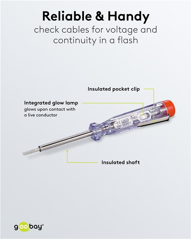 • Poręczne narzędzie do szybkiego i łatwego testowania połączeń elektrycznych pod kątem napięcia