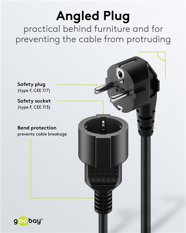 wtyk ze stykiem ochronnym (typ E/F, CEE 7/7) 90° > gniazdo ze stykiem ochronnym (typ F, CEE 7/3)