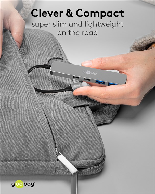 - Dzięki wyjątkowo kompaktowemu i smukłemu formatowi hub mieści się w każdej torbie i jest praktycznym towarzyszem w podróży lub w podróży