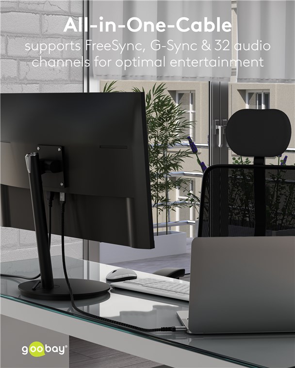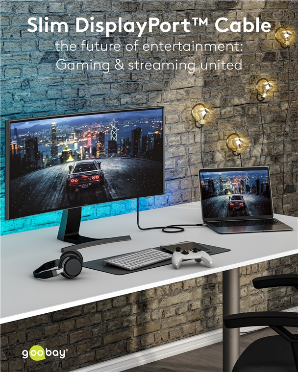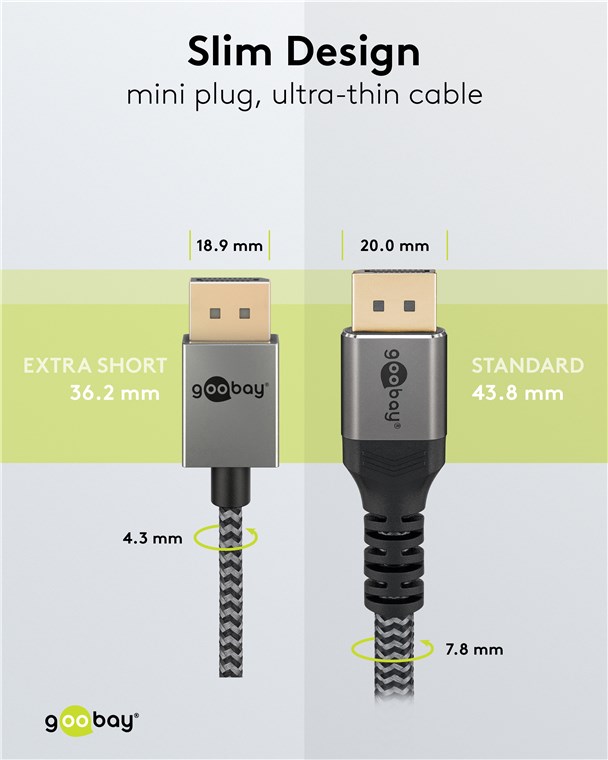 Seria Goobay Plus z elegancką metalową konstrukcją w kolorze Sharkskin Grey imponuje na trzy sposoby: ultra cienki kabel, ultra krótkie złącza i ultra wąski promień gięcia. Te trzy czynniki sprawiają, że kabel jest idealny do instalacji z tyłu urządzeń i wszędzie tam, gdzie przestrzeń jest ograniczona. Dzięki ultrawysokiej rozdzielczości obrazu 8K zapewniającej ostry jak brzytwa obraz i funkcji wielu monitorów o wysokiej częstotliwości, kabel DisplayPort™ jest idealnym wyborem do wciągających gier i wciągającej domowej rozrywki.