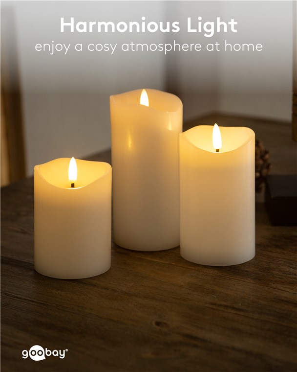 Tradycyjna elegancja prawdziwych świec woskowych spotyka się z nowoczesną, bezpieczną technologią oświetleniową: Dzięki realizmowemu efektowi migotania i woskowej osłonie zestaw świec tworzy ciepłą, harmonijną atmosferę prawdziwych świec – bez wypalania się, sadzenia lub stwarzania zagrożenia pożarowego. Stylowa dekoracja kolacji przez cały rok i magia Adwentu w okresie Bożego Narodzenia – idealna atmosfera na każdą okazję.