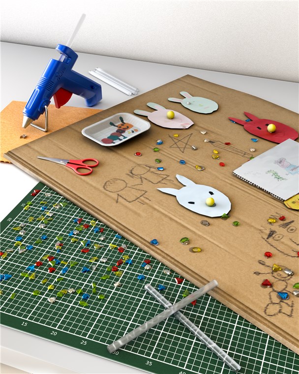 Klej na gorąco szybko schnie, dzięki czemu jest szczególnie wygodny do przyklejania luźnych lub małych elementów