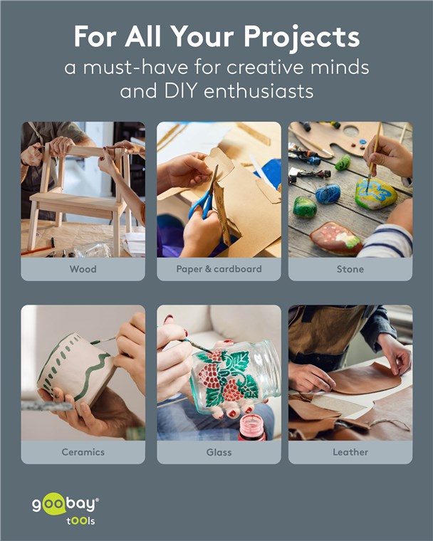 • Wszechstronne zastosowanie: Kleje na gorąco nadają się do wielu materiałów, np. tektury, ceramiki, drewna, metalu, skóry, akrylu i szkła