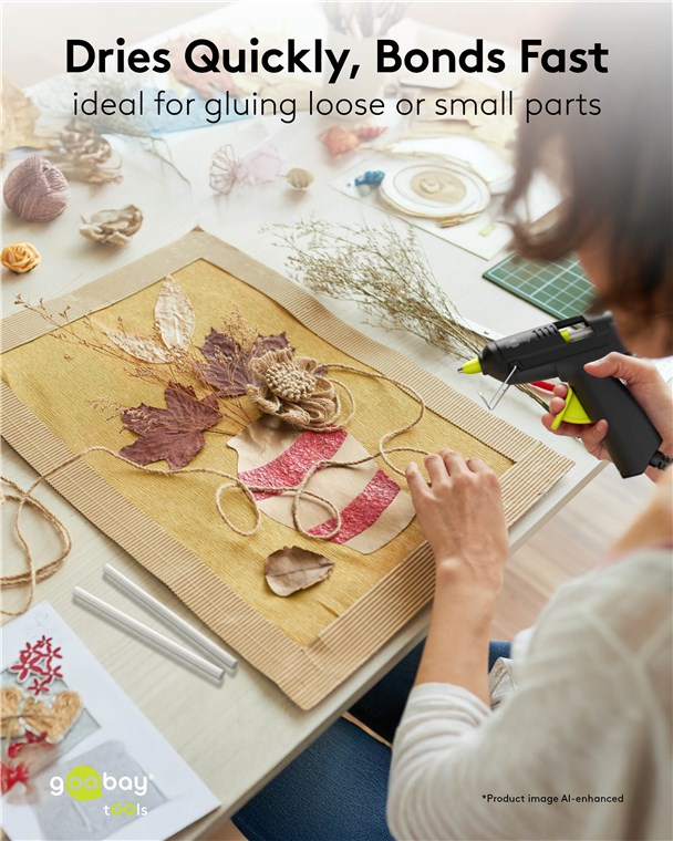 Klej na gorąco szybko schnie, dzięki czemu jest szczególnie wygodny do przyklejania luźnych lub małych elementów