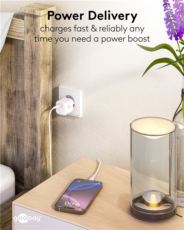 - Dzięki Power Delivery, ładowarka USB ma szczególnie bezpieczną i dynamiczną metodę ładowania, która określa optymalną moc wyjściową dla podłączonego urządzenia