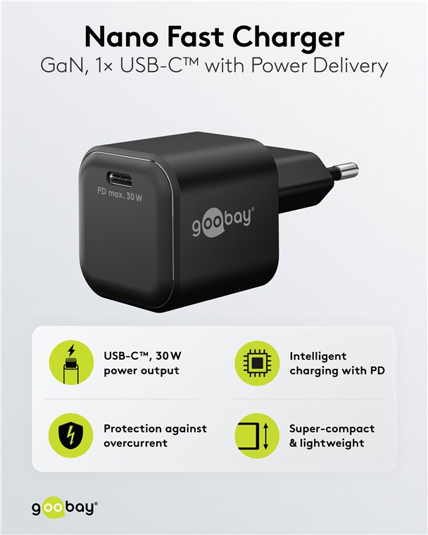 Szybka ładowarka USB-C™ PD GaN Nano (30 W) czarny
