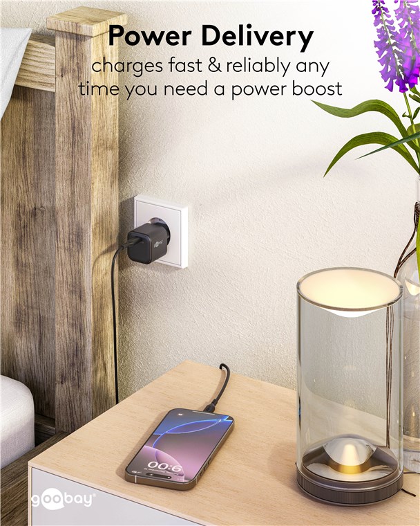 - Dzięki Power Delivery, ładowarka USB ma szczególnie bezpieczną i dynamiczną metodę ładowania, która określa optymalną moc wyjściową dla podłączonego urządzenia