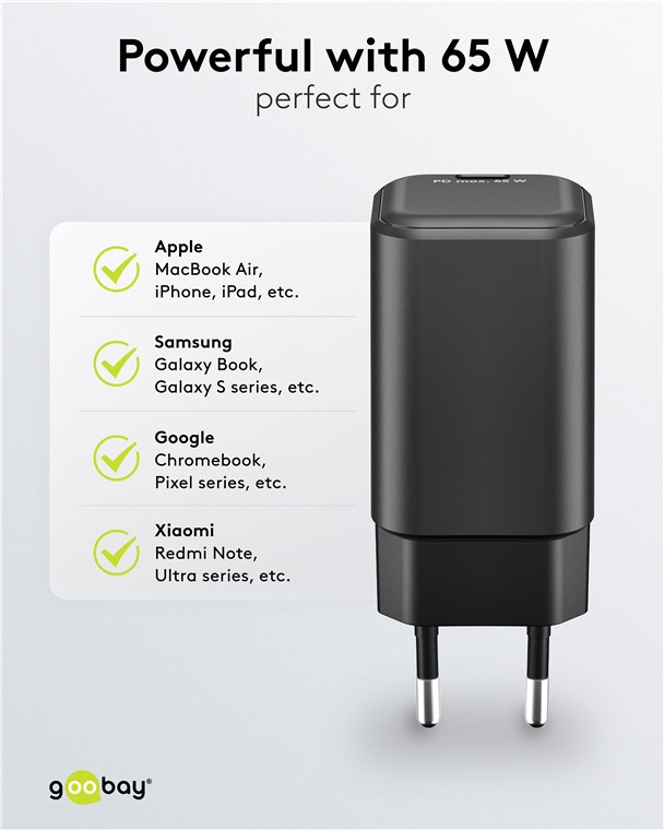 - Dzięki potężnej mocy 65 W i uniwersalnemu złączu USB-C™ adapter do ładowania nadaje się do niemal każdego urządzenia - od smartfonów po wydajne notebooki