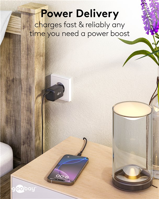 - Superkompaktowa i lekka konstrukcja mieści się w każdej torbie i sprawia, że zasilacz USB-C™ jest praktycznym towarzyszem w podróży