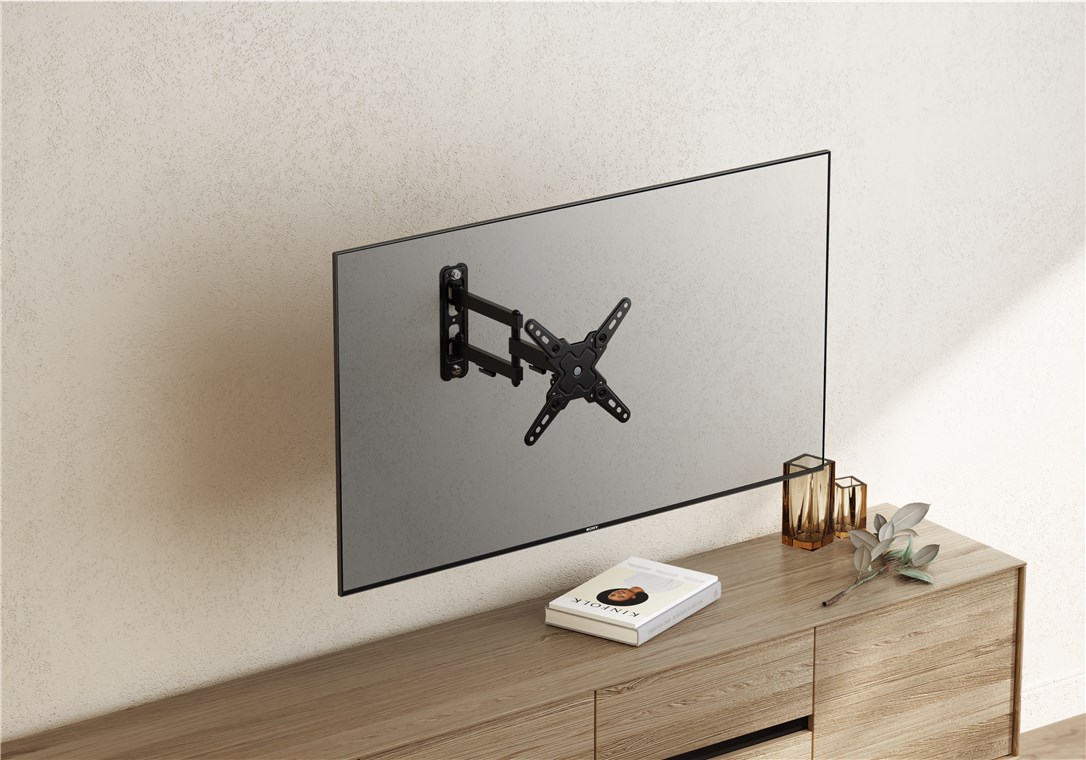 - Aby uzyskać dyskretny wygląd pomieszczenia, uchwyt osiąga minimalną odległość od ściany wynoszącą 6,6 cm, dzięki czemu telewizor nie wystaje do pomieszczenia