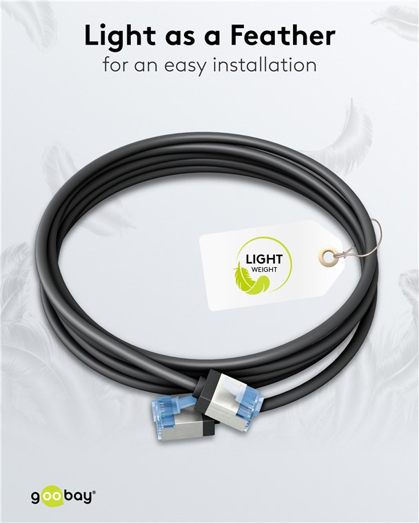 CATegoria sama dla siebie: Super cienkie kable CAT z bardzo krótkimi złączami drastycznie zmniejszają objętość materiału w szafach serwerowych i panelach krosowych - dla znacznie lepszej cyrkulacji powietrza i mniejszego gromadzenia się ciepła niż w przypadku konwencjonalnego okablowania. Ponadto, miękki płaszcz TPE i cienkie miedziane przewodniki zapewniają wyjątkową elastyczność i wydajność materiałową, które sprawiają, że ta generacja kabli jest idealnym partnerem sieciowym.