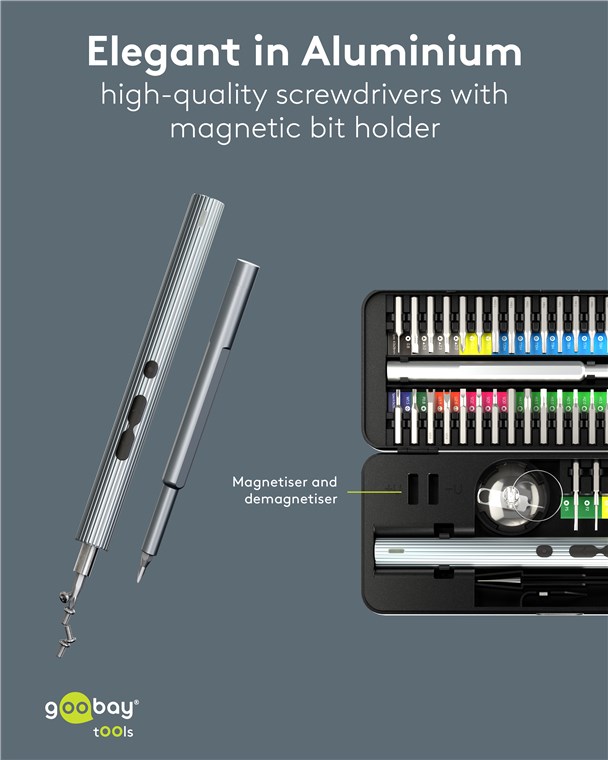Jakość spotyka się z funkcjonalnością: śrubokręt elektryczny przekonuje eleganckim metalowym wyglądem i wygodną obsługą. Nacięcia w uchwycie zapewniają efekt antypoślizgowy podczas ręcznego obracania śrubokręta i optymalny rozkład siły. Metalowa walizka z kodowaniem kolorami i bogate wyposażenie dodatkowe sprawiają, że zestaw śrubokrętów jest niezbędny dla każdego serwisanta telefonów komórkowych i majsterkowicza.