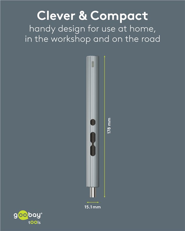 - Przemyślana konstrukcja z eleganckiego aluminium: Smukły, elektryczny śrubokręt dobrze leży w dłoni i zapewnia niezbędną precyzję podczas pracy ze smartfonem, laptopem, komputerem, dronem itp.