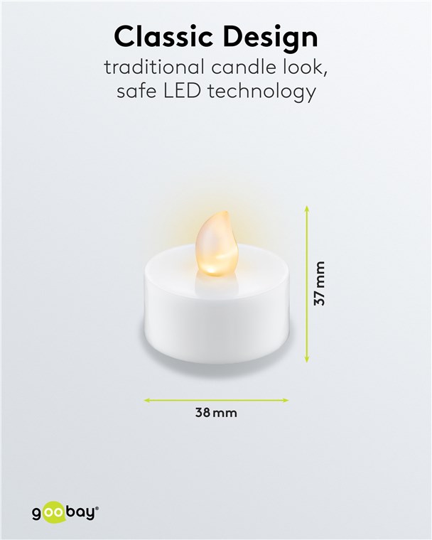 - Średnica 3,8 cm, każda świeczka LED zasilana 1x baterią litową CR2032 (4 sztuki w zestawie)